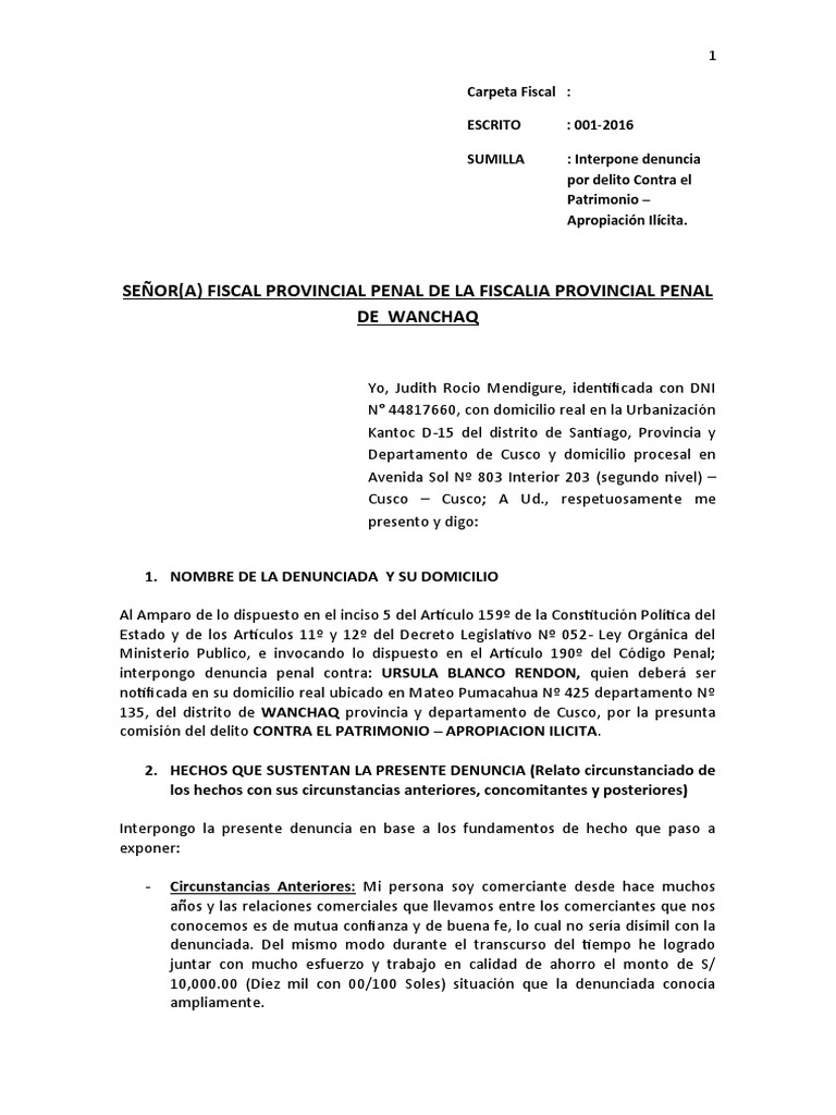 Denuncia Por Delito De Apropiacion Indebida Pdf Trucos De Confianza Justicia Penal
