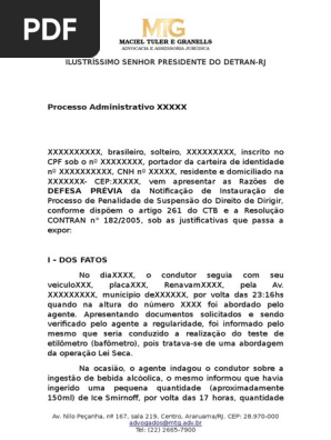 Modelo Defesa Processo Adm De Suspensao Do Direito De Dirigir Julgamentos Advogado