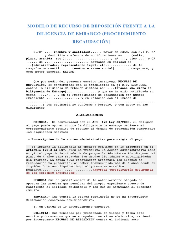 Recurso Reposicion Diligencia Embargo Pdf Estatuto De Limitaciones Esfera Publica